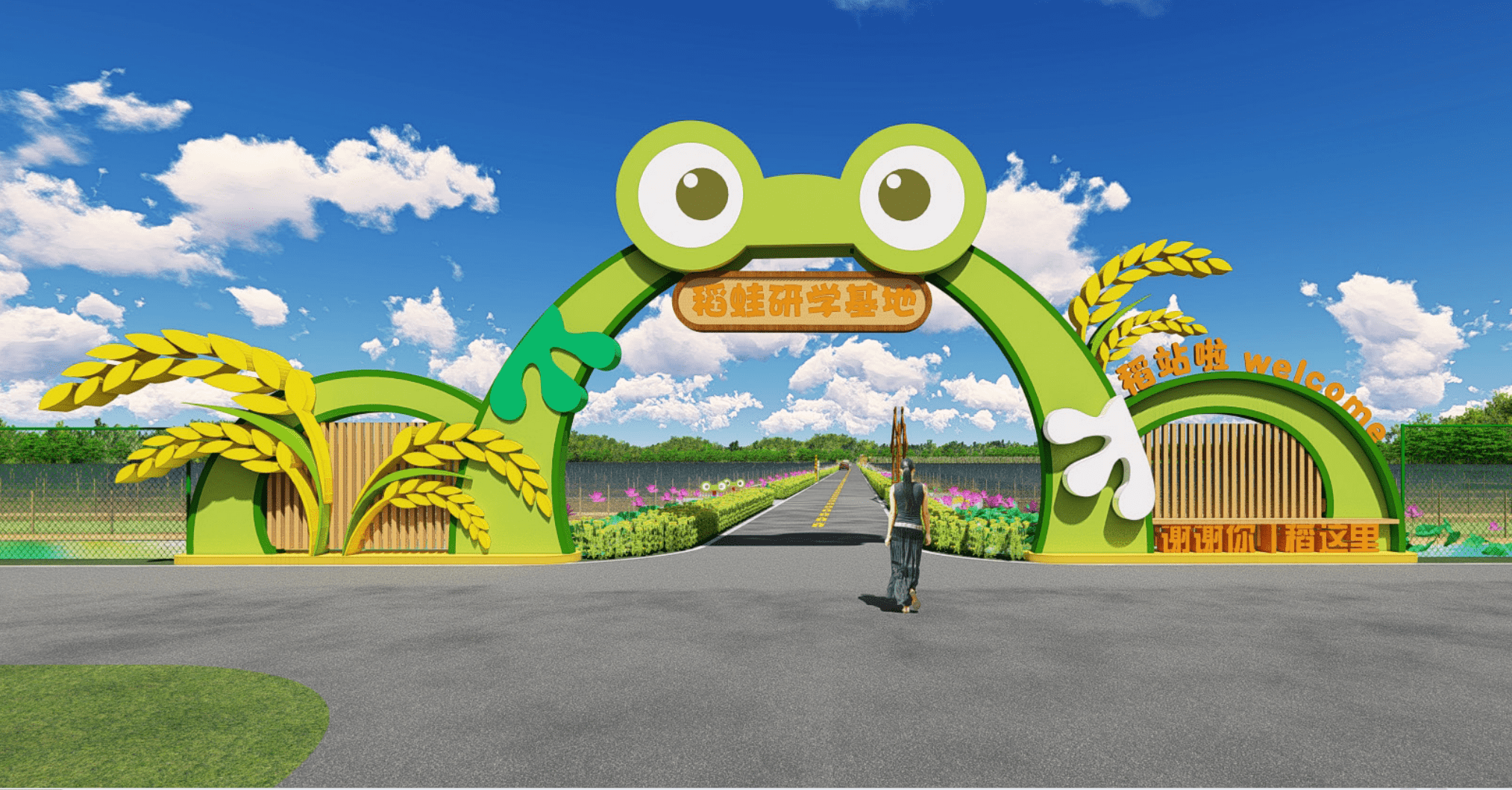 依托稻蛙养殖优质资源, 以“ 稻蛙共生产业” 为主导, 水稻种植为基础, 稻米青蛙 + 体验为特色, 三产融合为亮点, 技术培训为配套,将该区域打造成集水稻种植、稻蛙养殖、种苗繁育、加工物流、技术服务、休闲观光、稻蛙创意、研学科普等于一体的复合型稻蛙共生基地。