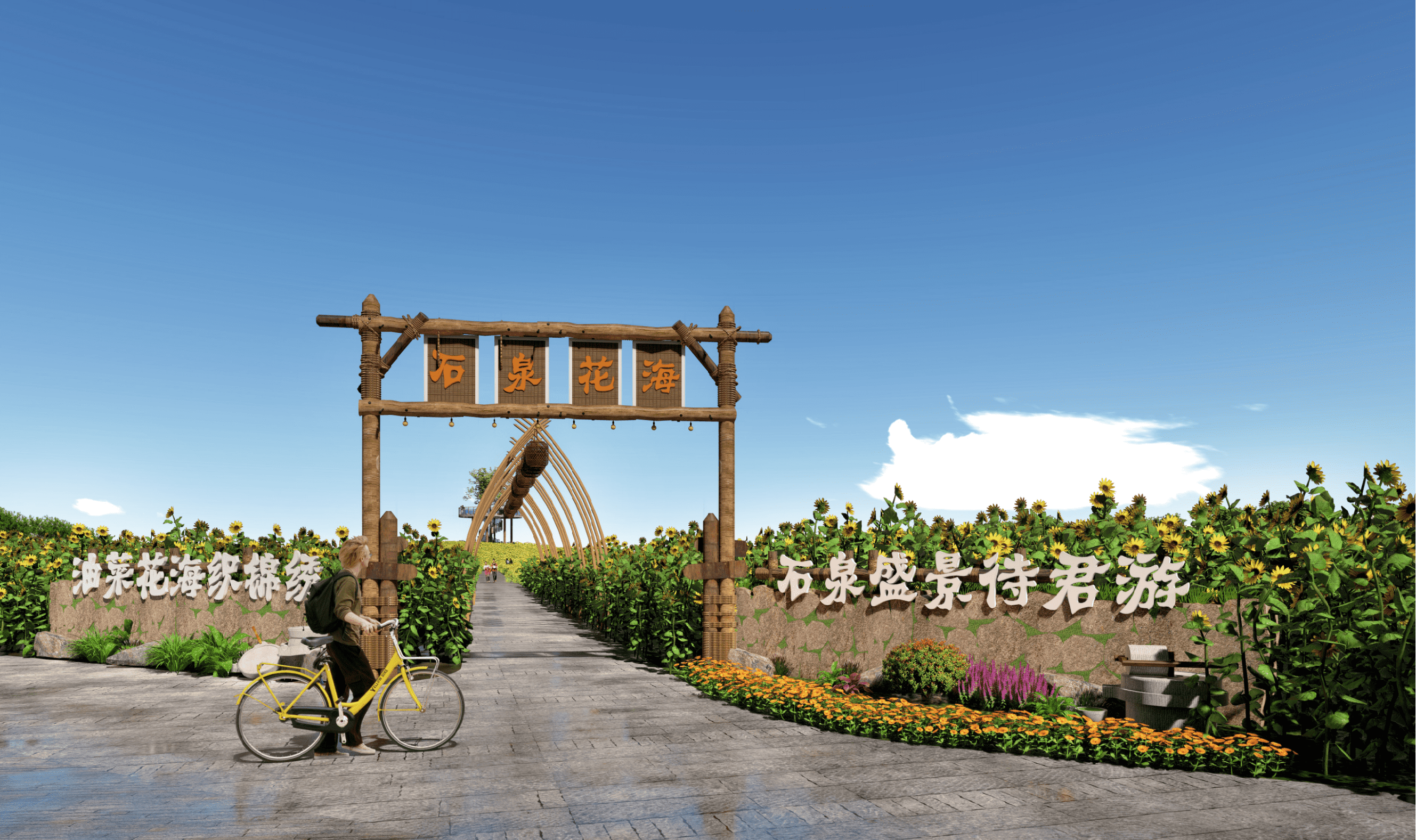 本项目以壮观的向日葵田园为核心,打造集观光打卡、亲子研学、摄影写生、农趣体验于一体的生态旅游胜地。花期时节(6-10月),连绵起伏的向日葵与蓝天相映成画,游客可漫步花径、体验采摘,参与向日葵主题手作,品尝特色葵花籽美食。配套休闲驿站、观景台及田园市集,是短途游、网红打卡的理想之选。